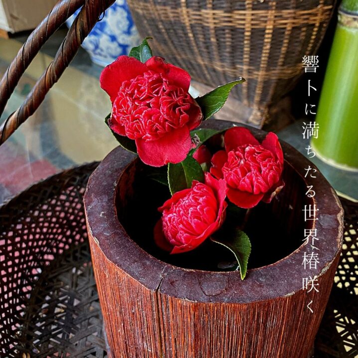 響卜に満ちたる世界椿咲く